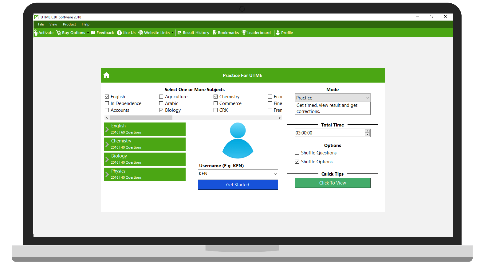 Practice one or more subjects at once - You can practice all four subjects at a time.